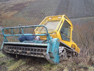 Steillagen können mit einer Spezielen Mulchraupe bearbeitet werden.