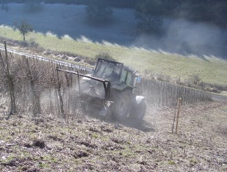 Wir roden maschinell je nach Anforderung mit Forstmulcher oder Wurzelstockfräse. Bei Bedarf kann die Rodung mit Schenkelpflug gefahren werden, so bleiben keine Wurzeln im Boden und der Weinberg kann direkt neu gepflanzt werden.